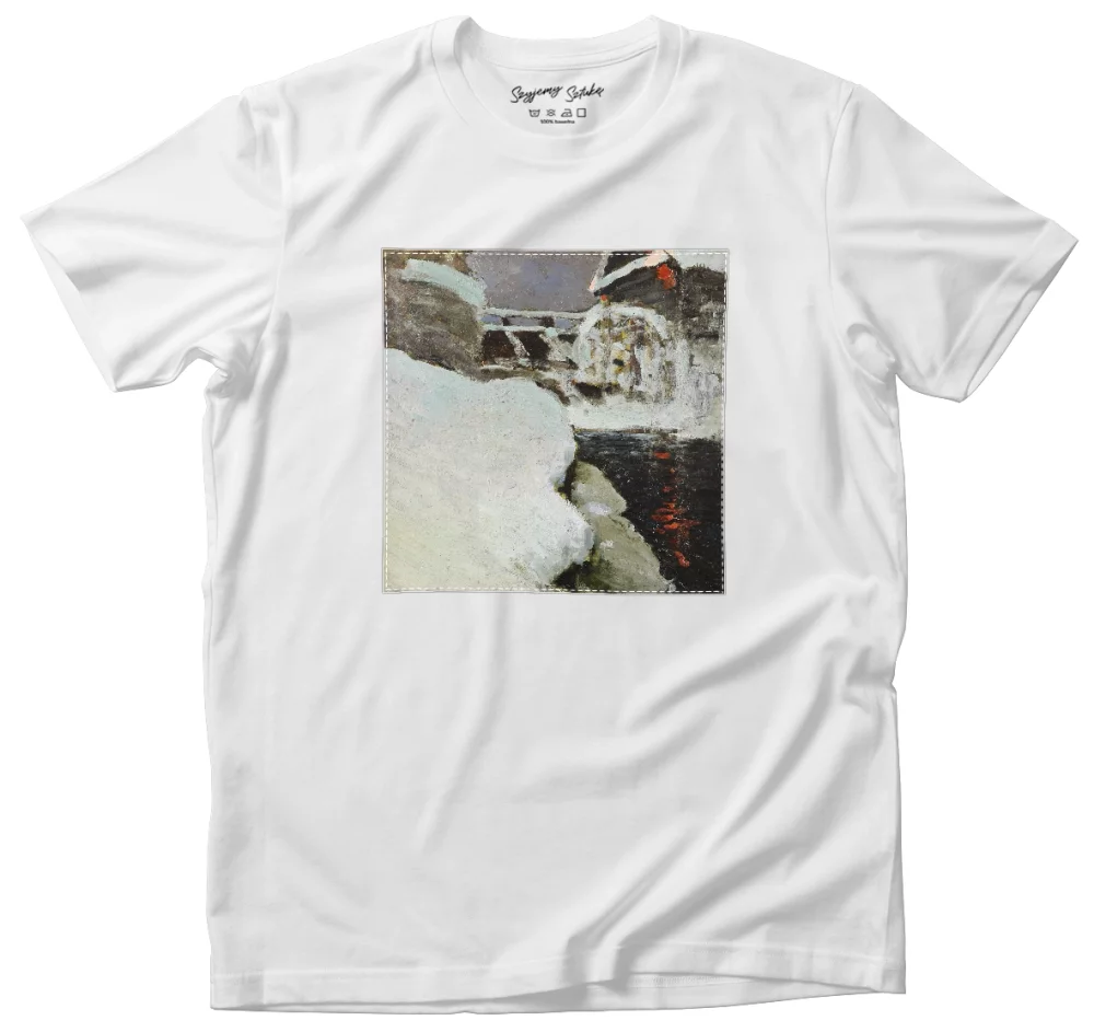 - Koszulka z naszywką Młyn zimą Ferdynand Ruszczyc Wysoka gramatura, trwałość i unikalny detal nadający charakteru. Każda sztuka szyta na zamówienie – wyjątkowa, solidna i stylowa!