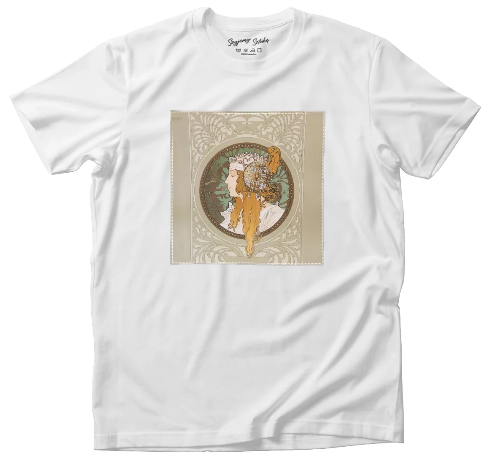 Koszulka z naszywką Bizantyjskie głowy: blondynka Alfons Mucha 👕✨