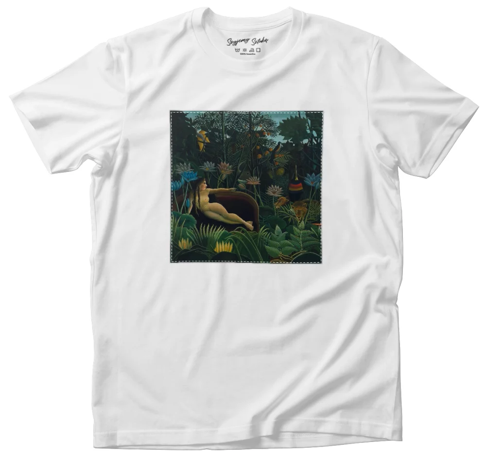 - Koszulka z naszywką The Dream Henri Rousseau Wysoka gramatura, trwałość i unikalny detal nadający charakteru. Każda sztuka szyta na zamówienie – wyjątkowa, solidna i stylowa!