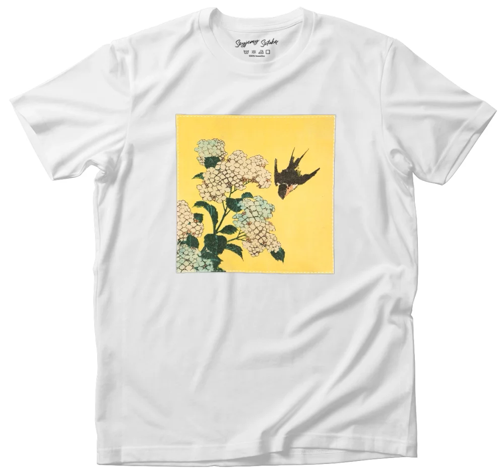 Koszulka z naszywką Hortensja i Jaskółka Katsushika Hokusai 👕✨