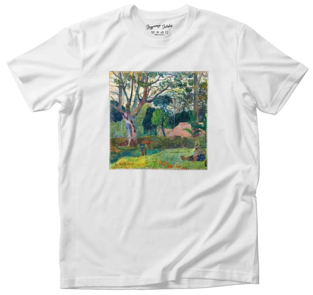 - Koszulka z naszywką Te raau rahi (Wielkie Drzewo) Paul Gauguin Wysoka gramatura, trwałość i unikalny detal nadający charakteru. Każda sztuka szyta na zamówienie – wyjątkowa, solidna i stylowa!