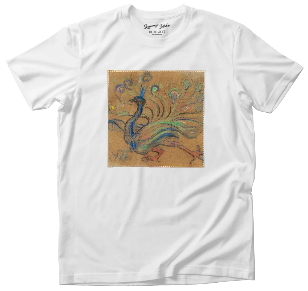 • Koszulka z naszywką Paw Stanisław Wyspiański Wysoka gramatura, trwałość i unikalny detal nadający charakteru. Każda sztuka szyta na zamówienie – wyjątkowa, solidna i stylowa!