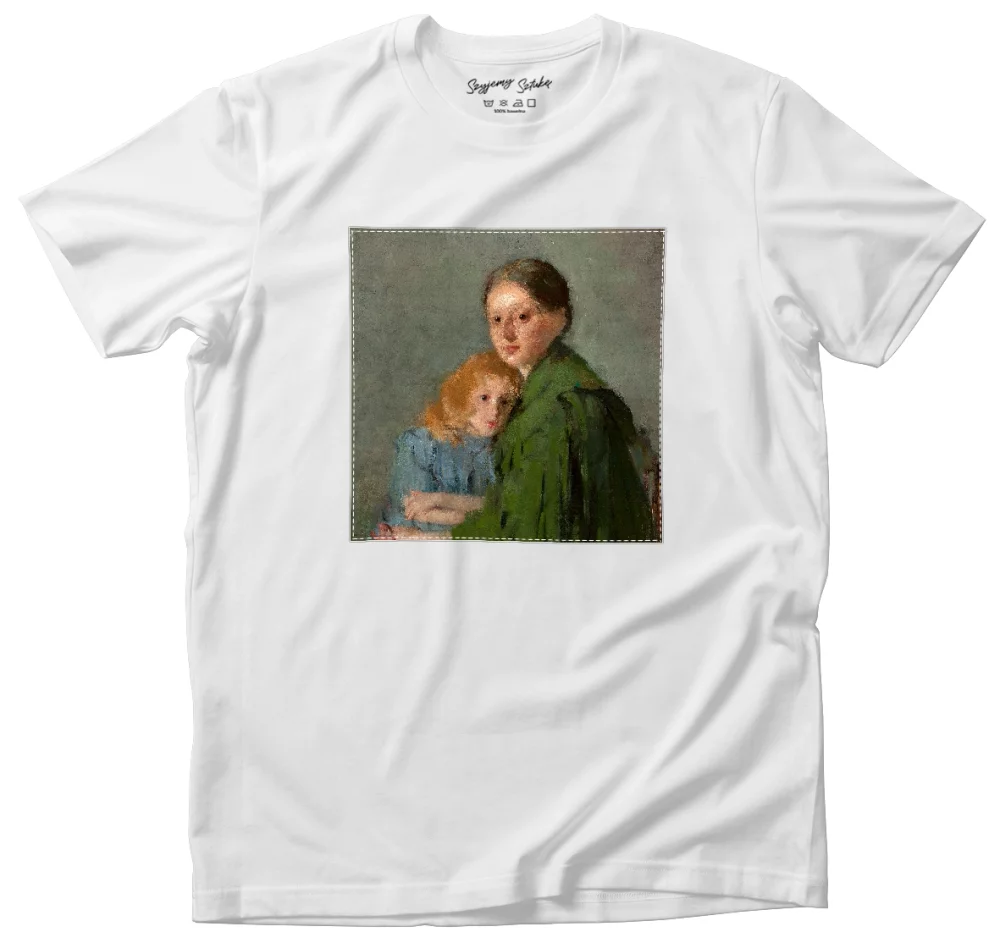 • Koszulka z naszywką Portret kobiety z małą dziewczynką (Matka z dzieckiem) Olga Boznańska Wysoka gramatura, trwałość i unikalny detal nadający charakteru. Każda sztuka szyta na zamówienie – wyjątkowa, solidna i stylowa!