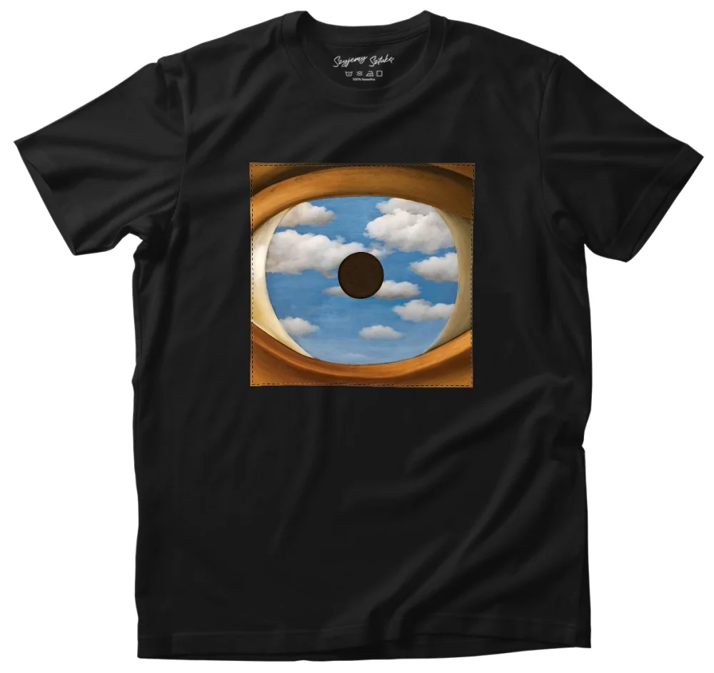 • Koszulka z naszywką Fałszywe lustro René Magritte Wysoka gramatura, trwałość i unikalny detal nadający charakteru. Każda sztuka szyta na zamówienie – wyjątkowa, solidna i stylowa!