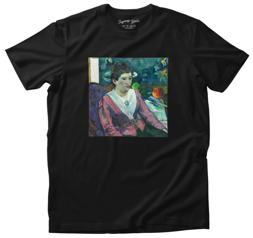 Koszulka z naszywką Kobieta na tle martwej natury, Cezanne Paul Gauguin 👕✨