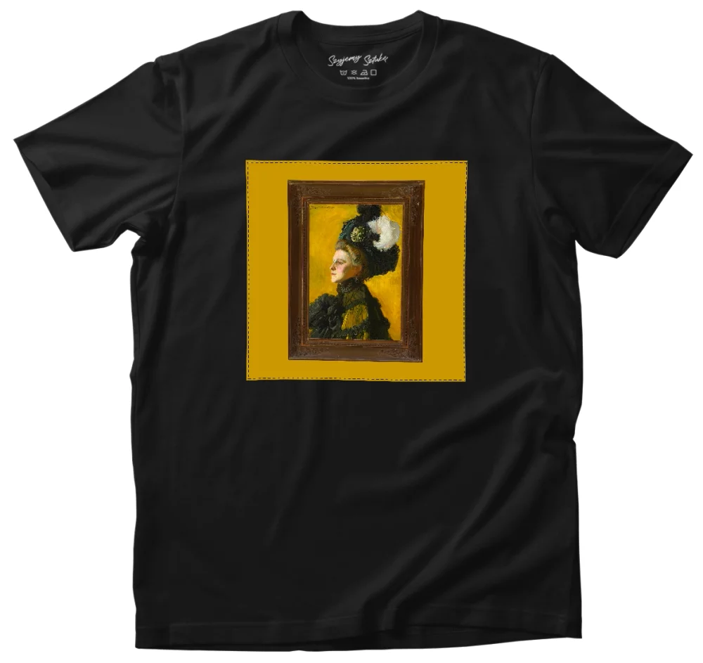 Koszulka z naszywką Portret żony artysty Jadwigi na żółtym tle Józef Mehoffer 👕✨