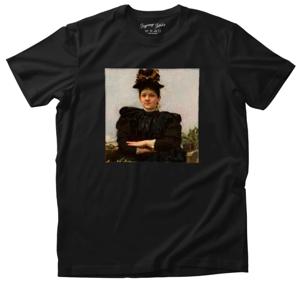 • Koszulka z naszywką Portret Wandy Strażyńskiej Józef Mehoffer Wysoka gramatura, trwałość i unikalny detal nadający charakteru. Każda sztuka szyta na zamówienie – wyjątkowa, solidna i stylowa!