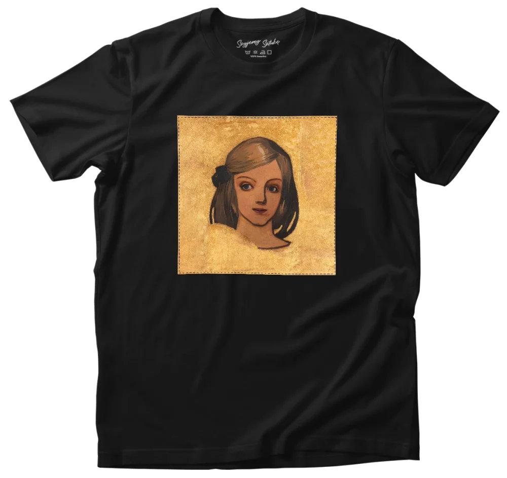Koszulka z naszywką Główka dziewczynki na złotym tle Józef Mehoffer 👕✨