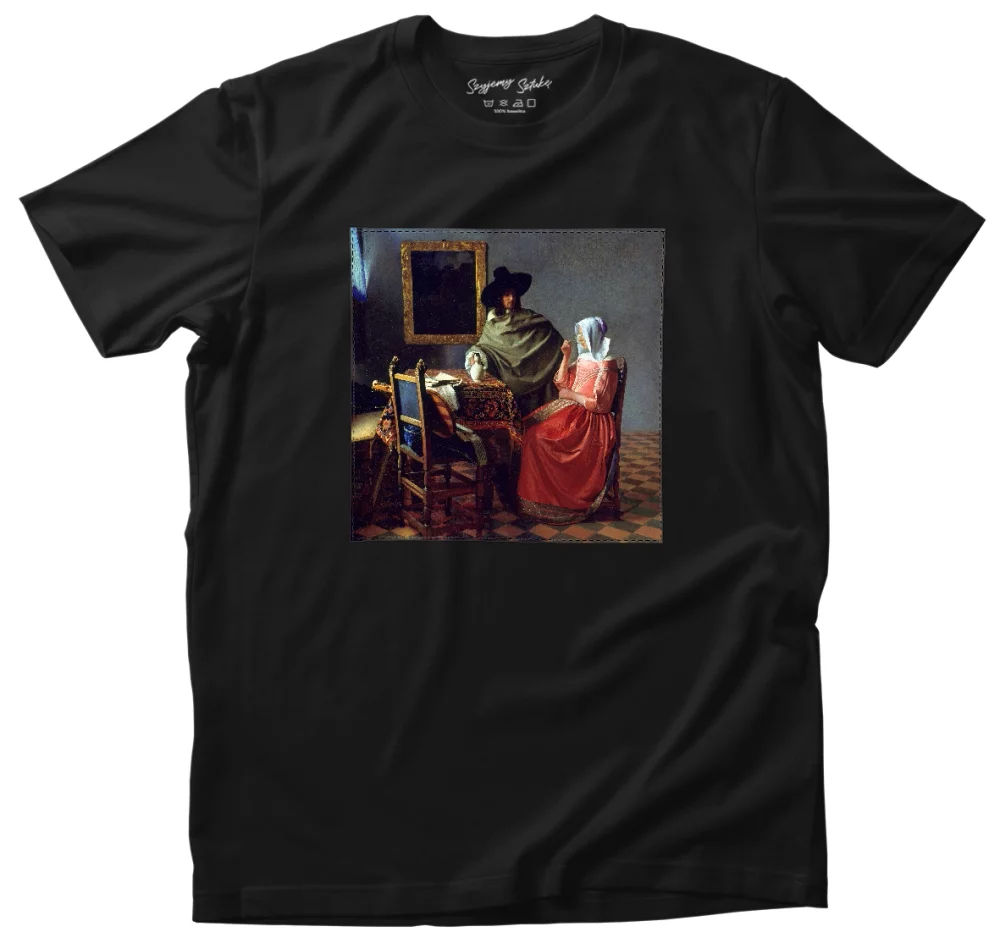 Koszulka z naszywką Kieliszek Wina Jan Vermeer 👕✨