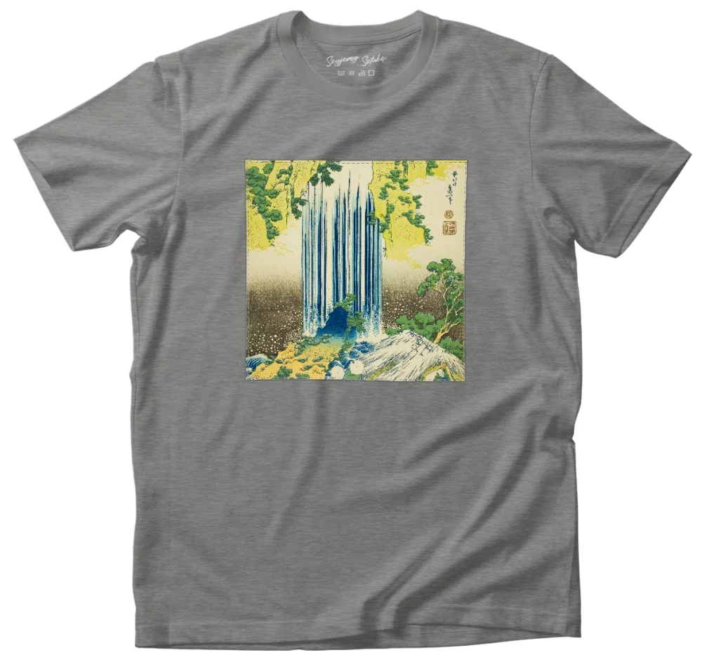Koszulka z naszywką Wodospady Yoro w prowincji Mino Katsushika Hokusai 👕✨