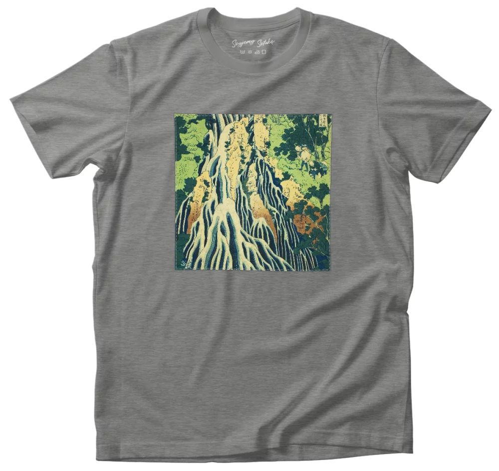 Koszulka z naszywką Wodospad Kirifuri na górze Kurokami w prowincji Shimotsuke Katsushika Hokusai 👕✨