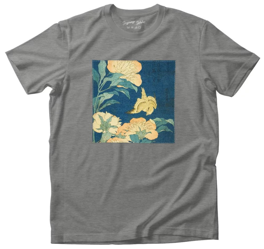 Koszulka z naszywką Kanarek i piwonia Katsushika Hokusai 👕✨