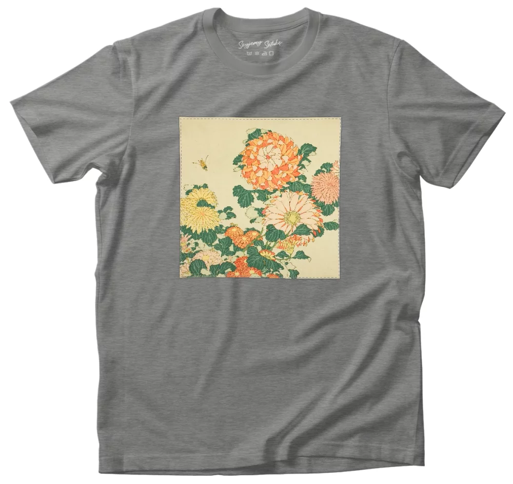Koszulka z naszywką Chryzantemy i pszczoła Katsushika Hokusai 👕✨