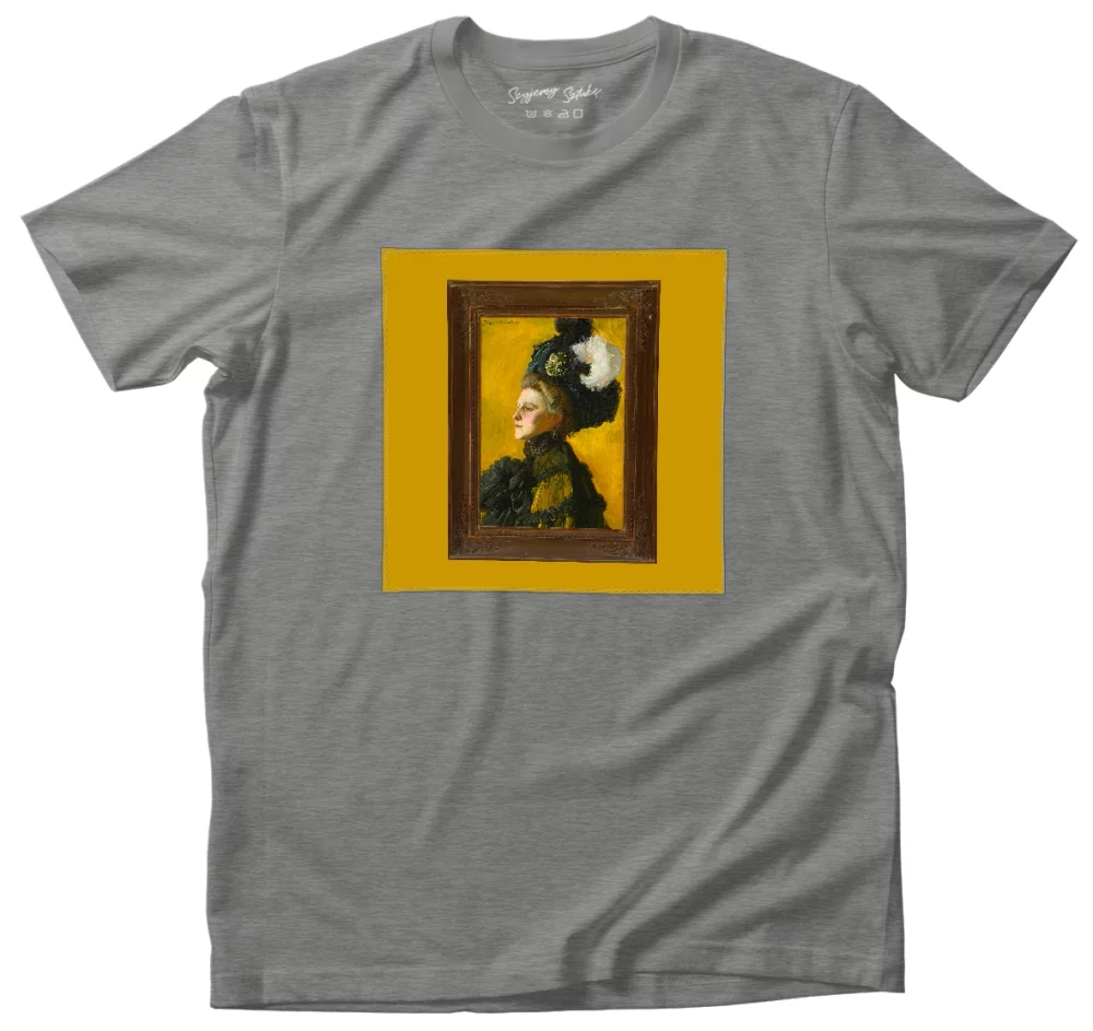 • Koszulka z naszywką Portret żony artysty Jadwigi na żółtym tle Józef Mehoffer Wysoka gramatura, trwałość i unikalny detal nadający charakteru. Każda sztuka szyta na zamówienie – wyjątkowa, solidna i stylowa!
