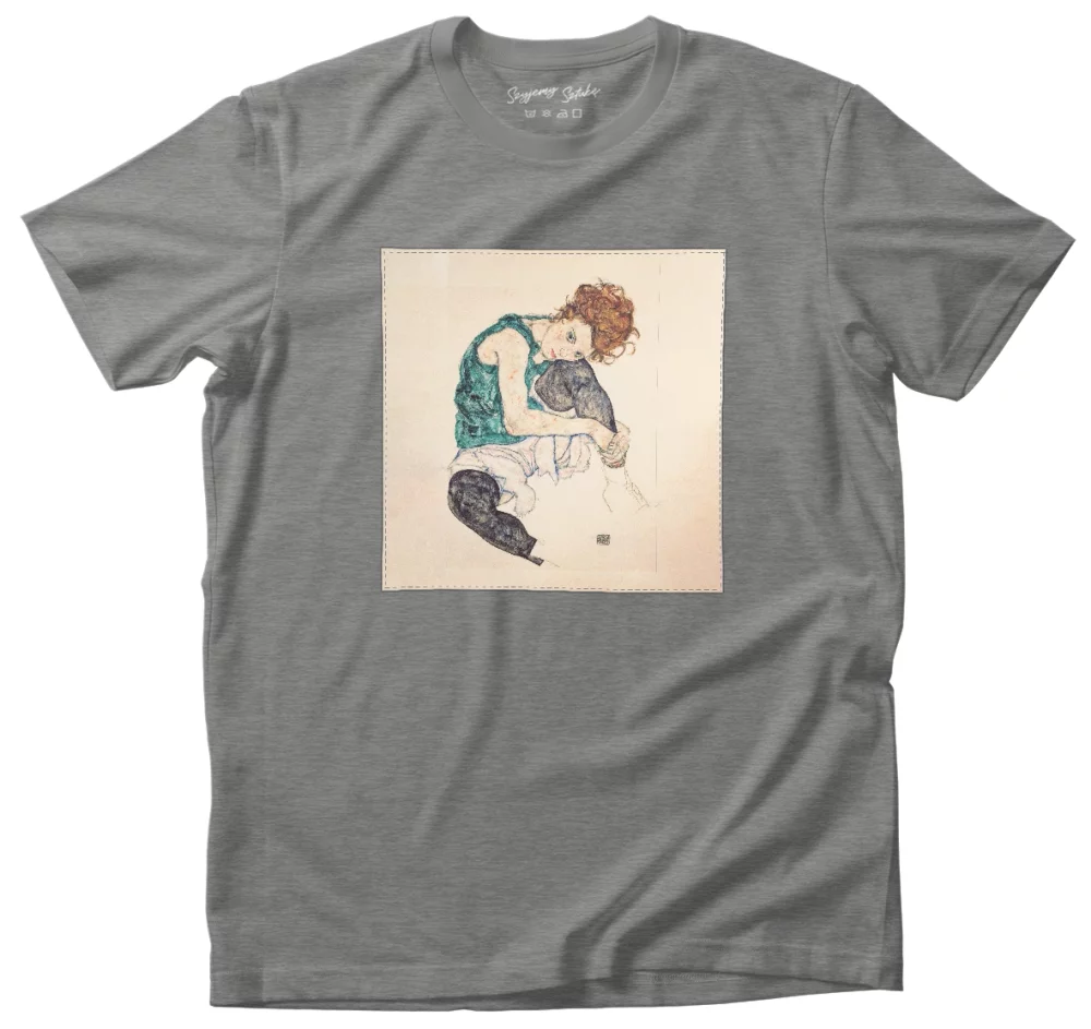 Koszulka z naszywką Siedząca kobieta z podniesionym kolanem Egon Schiele 👕✨