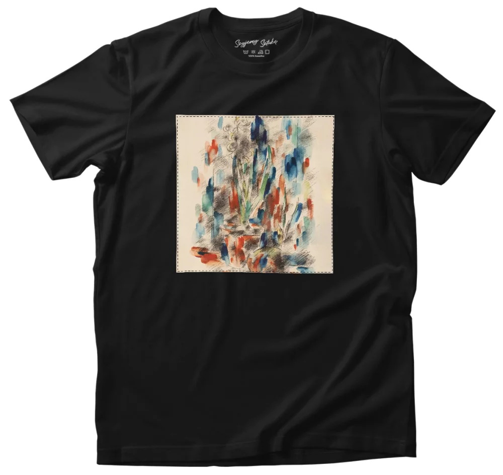 - Koszulka z naszywką Martwa natura z hiacyntem Władysław Strzemiński Wysoka gramatura, trwałość i unikalny detal nadający charakteru. Każda sztuka szyta na zamówienie – wyjątkowa, solidna i stylowa!