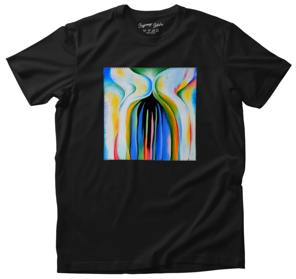 • Koszulka z naszywką Szare linie z czarnym, niebieskim i żółtym Georgia O’Keeffe Wysoka gramatura, trwałość i unikalny detal nadający charakteru. Każda sztuka szyta na zamówienie – wyjątkowa, solidna i stylowa!