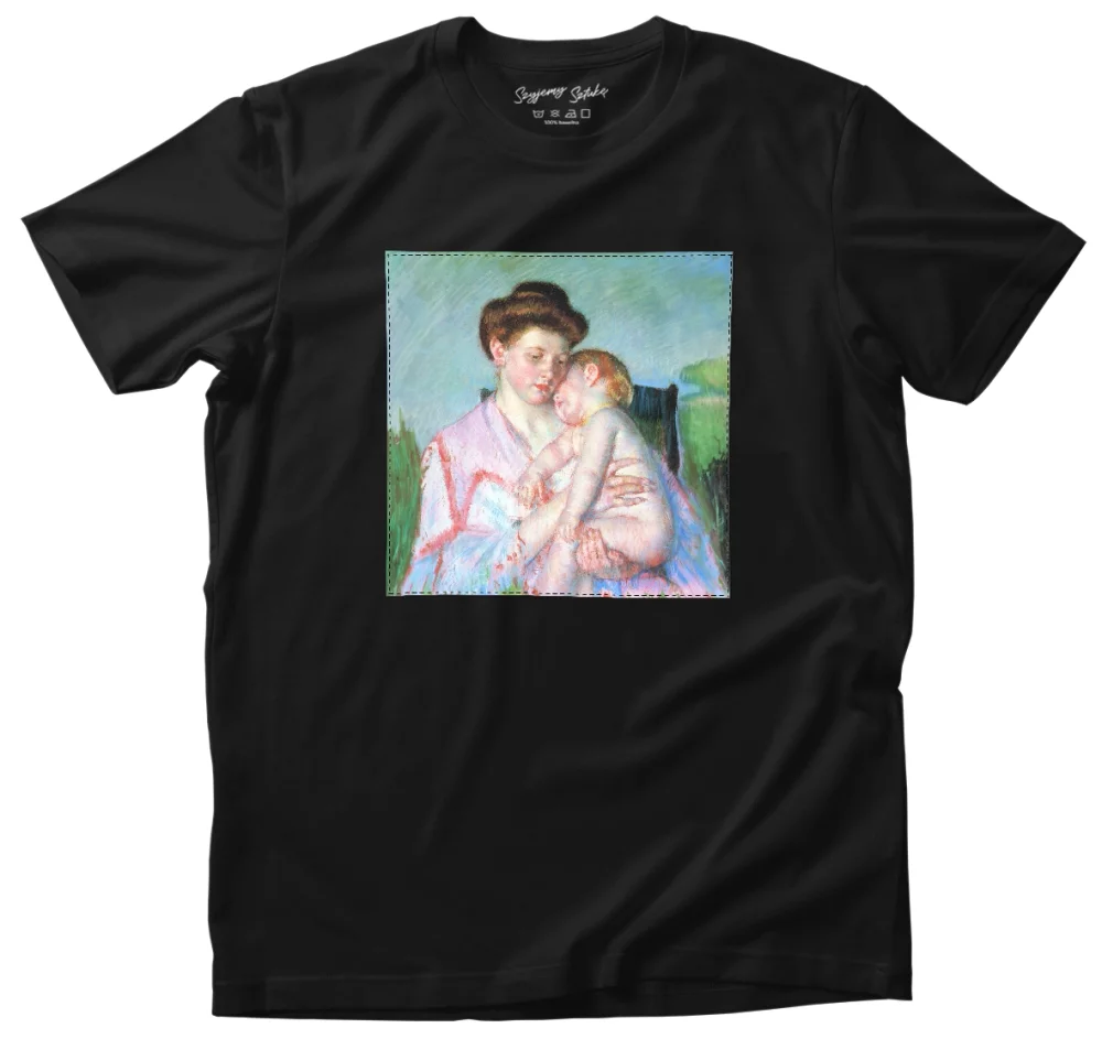 - Koszulka z naszywką Śpiące niemowlę Mary Cassatt Wysoka gramatura, trwałość i unikalny detal nadający charakteru. Każda sztuka szyta na zamówienie – wyjątkowa, solidna i stylowa!