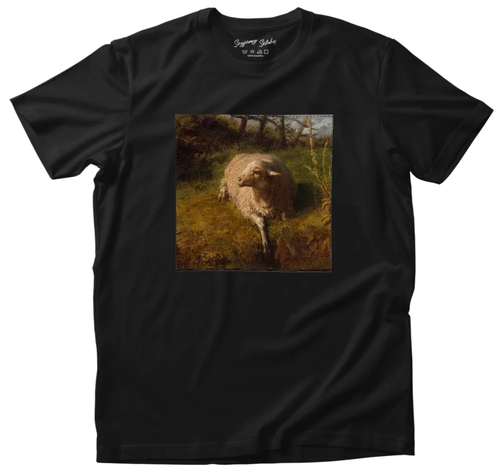 - Koszulka z naszywką Odpoczywająca owca Rosa Bonheur Wysoka gramatura, trwałość i unikalny detal nadający charakteru. Każda sztuka szyta na zamówienie – wyjątkowa, solidna i stylowa!