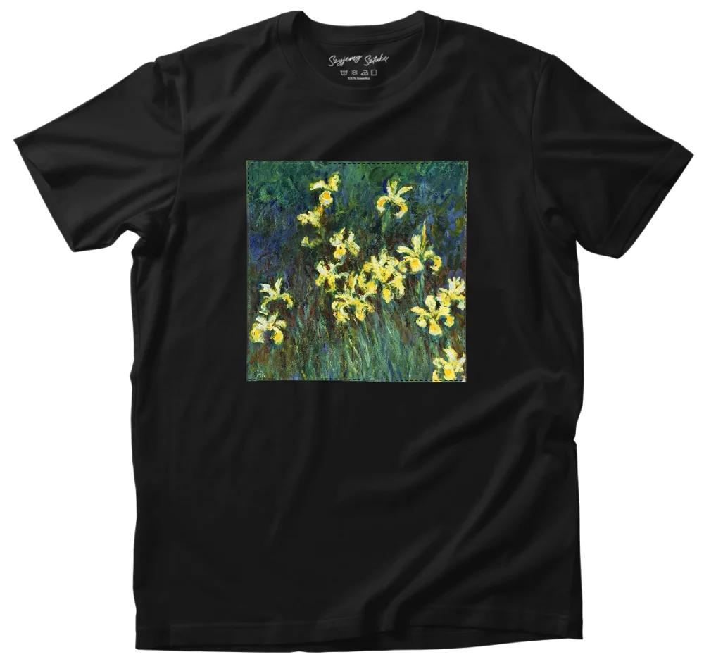 - Koszulka z naszywką Irysy Claude Monet Wysoka gramatura, trwałość i unikalny detal nadający charakteru. Każda sztuka szyta na zamówienie – wyjątkowa, solidna i stylowa!