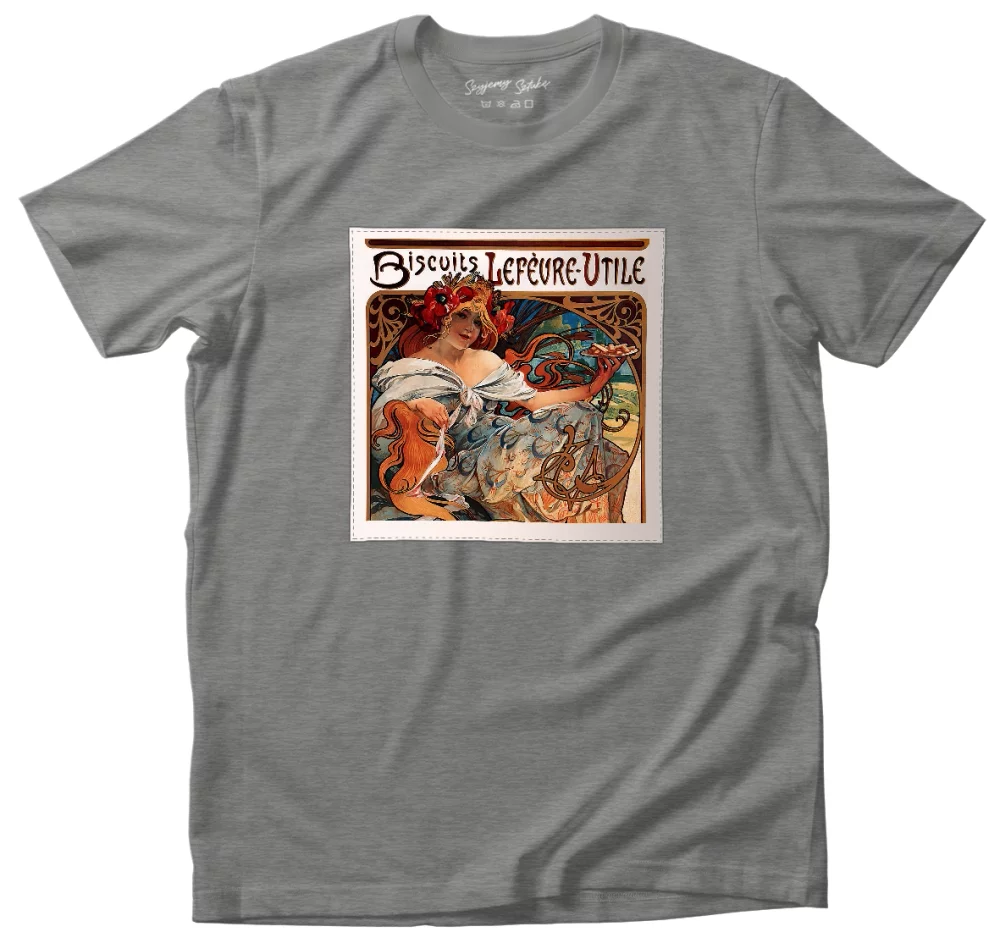 Koszulka z naszywką Biscuits Lefevre Utile Alfons Mucha 👕✨