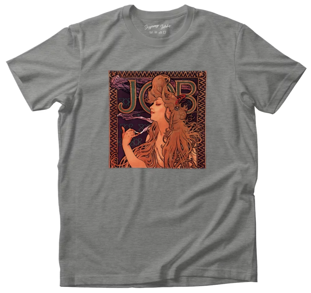 • Koszulka z naszywką Job Alfons Mucha Wysoka gramatura, trwałość i unikalny detal nadający charakteru. Każda sztuka szyta na zamówienie – wyjątkowa, solidna i stylowa!
