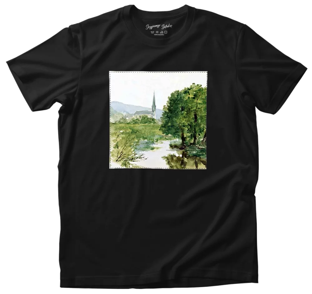 • Koszulka z naszywką Pejzaż Anna Bilińska-Bohdanowiczowa Wysoka gramatura, trwałość i unikalny detal nadający charakteru. Każda sztuka szyta na zamówienie – wyjątkowa, solidna i stylowa!