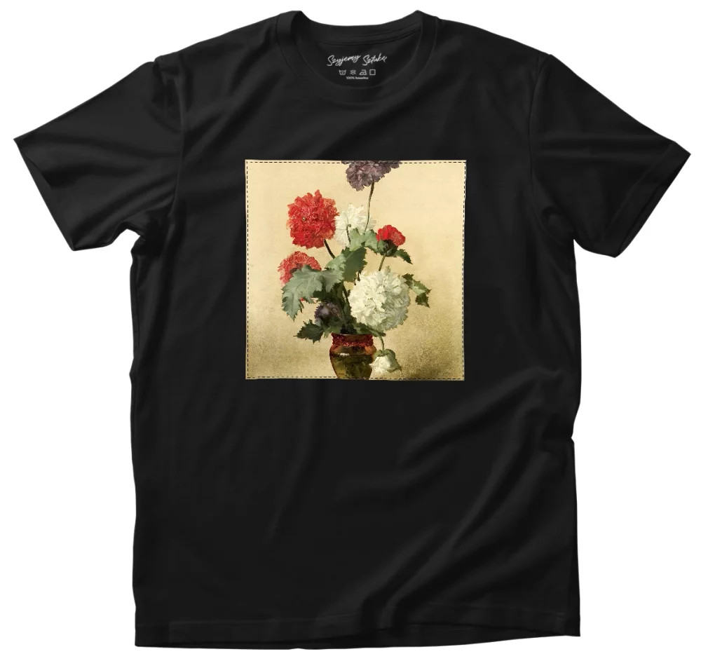- Koszulka z naszywką Peonie (maki) Anna Bilińska-Bohdanowiczowa Wysoka gramatura, trwałość i unikalny detal nadający charakteru. Każda sztuka szyta na zamówienie – wyjątkowa, solidna i stylowa!