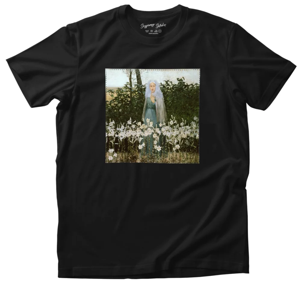 • Koszulka z naszywką Zwiastowanie George Hitchcock Wysoka gramatura, trwałość i unikalny detal nadający charakteru. Każda sztuka szyta na zamówienie – wyjątkowa, solidna i stylowa!