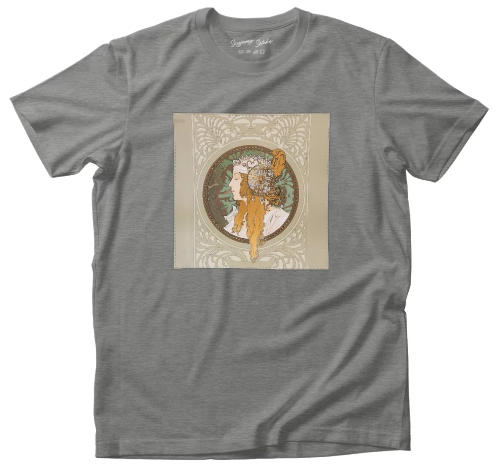 Koszulka z naszywką Bizantyjskie głowy: blondynka Alfons Mucha 👕✨
