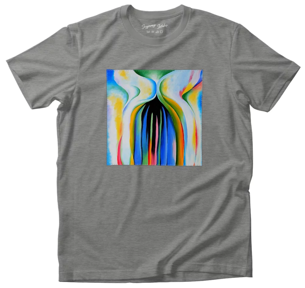 Koszulka z naszywką Szare linie z czarnym, niebieskim i żółtym Georgia O’Keeffe