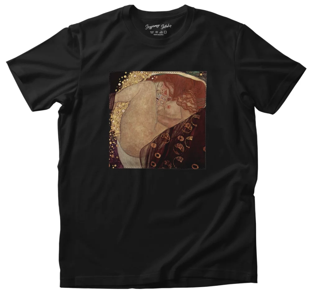 • Koszulka z naszywką Danae Gustav Klimt Wysoka gramatura, trwałość i unikalny detal nadający charakteru. Każda sztuka szyta na zamówienie – wyjątkowa, solidna i stylowa!
