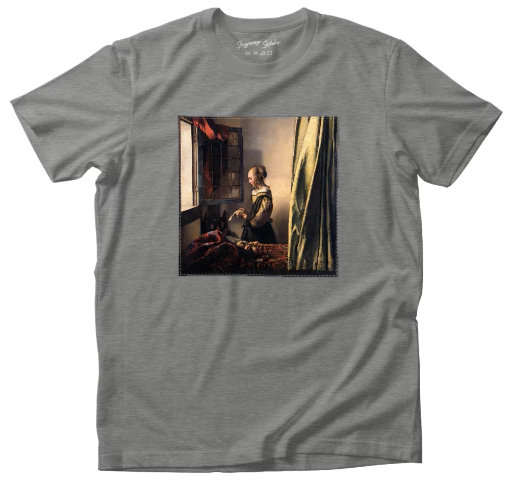 Koszulka z naszywką Dziewczyna czytająca list przy otwartym oknie Jan Vermeer 👕✨