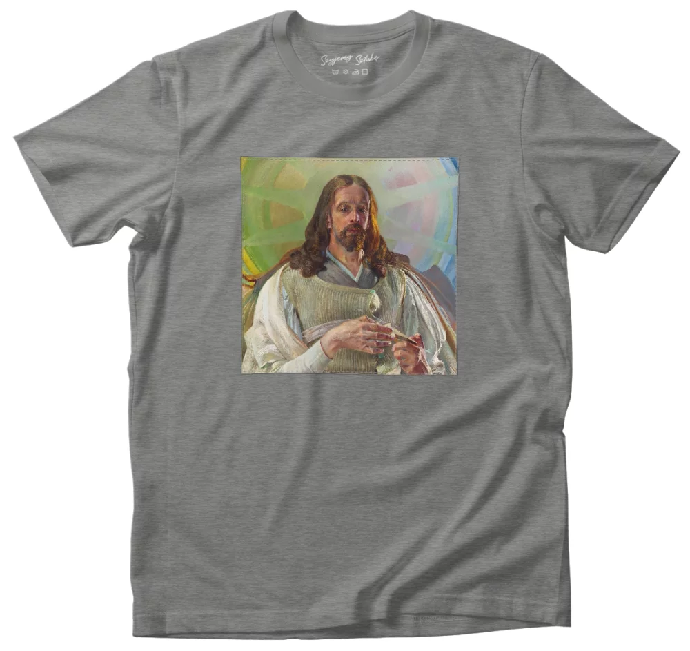 • Koszulka z naszywką Chrystus w Emaus - środkowa część tryptyku Jacek Malczewski Wysoka gramatura, trwałość i unikalny detal nadający charakteru. Każda sztuka szyta na zamówienie – wyjątkowa, solidna i stylowa!