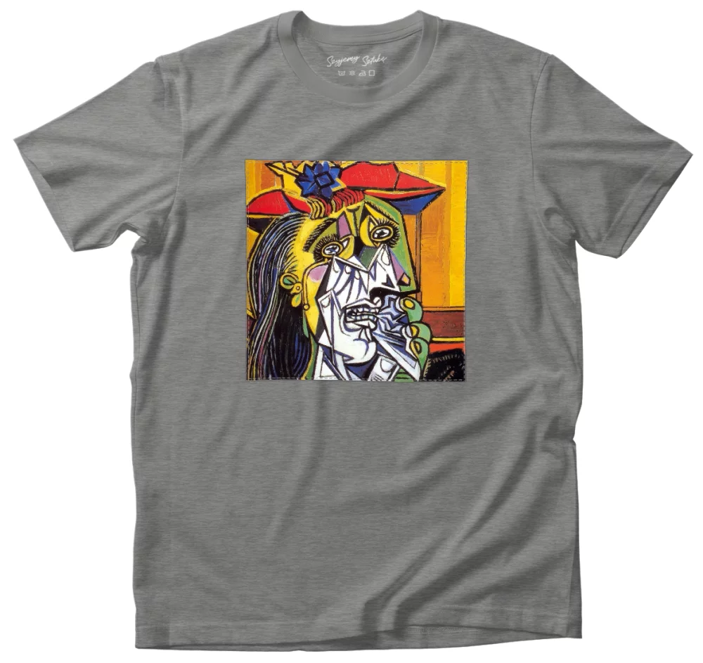 - Koszulka z naszywką Płacząca kobieta Pablo Picasso Wysoka gramatura, trwałość i unikalny detal nadający charakteru. Każda sztuka szyta na zamówienie – wyjątkowa, solidna i stylowa!