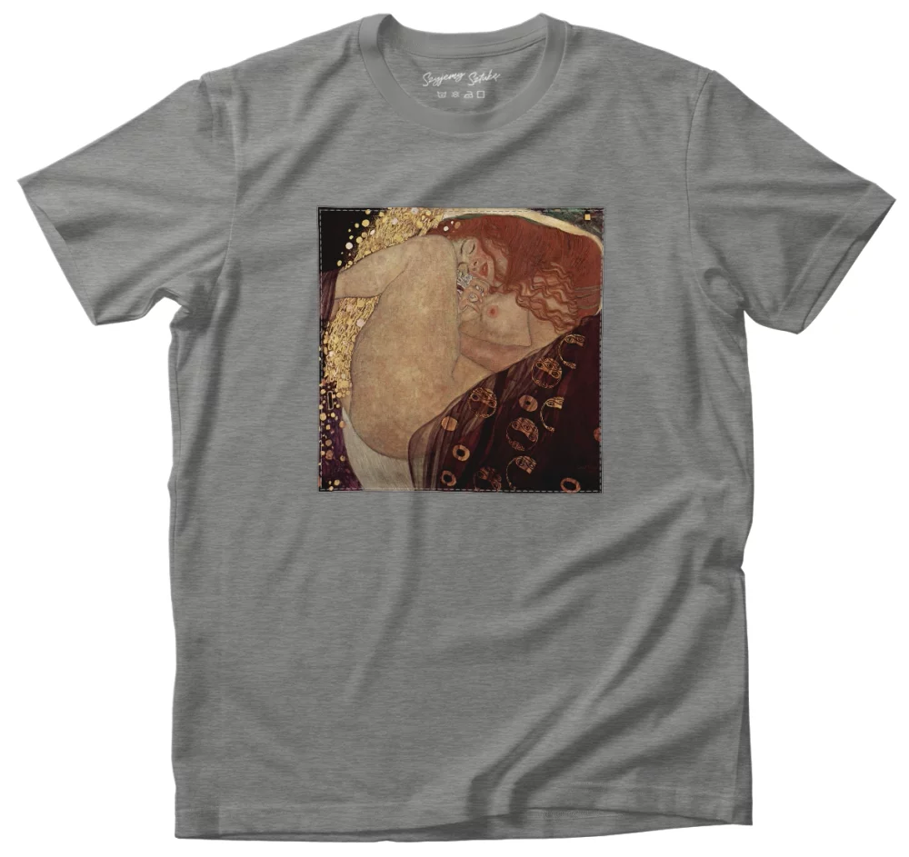 • Koszulka z naszywką Danae Gustav Klimt Wysoka gramatura, trwałość i unikalny detal nadający charakteru. Każda sztuka szyta na zamówienie – wyjątkowa, solidna i stylowa!