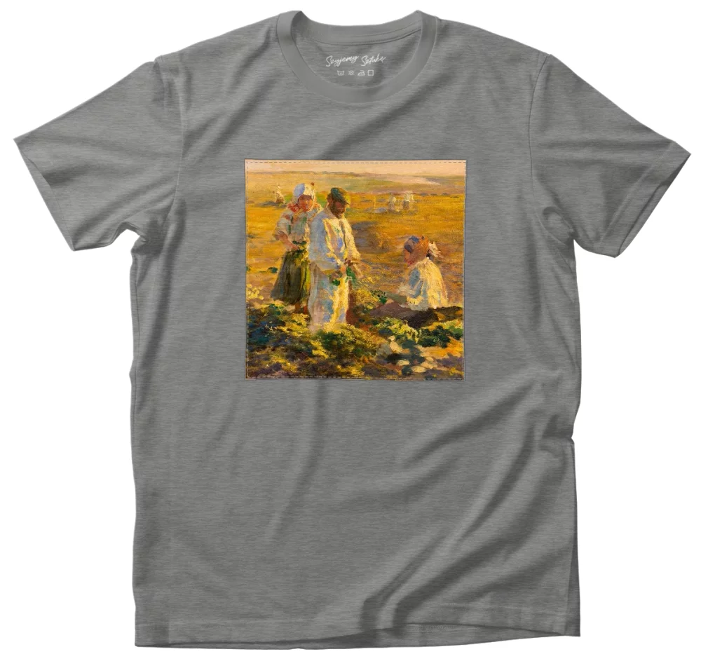 - Koszulka z naszywką Kopanie buraków Leon Wyczółkowski Wysoka gramatura, trwałość i unikalny detal nadający charakteru. Każda sztuka szyta na zamówienie – wyjątkowa, solidna i stylowa!