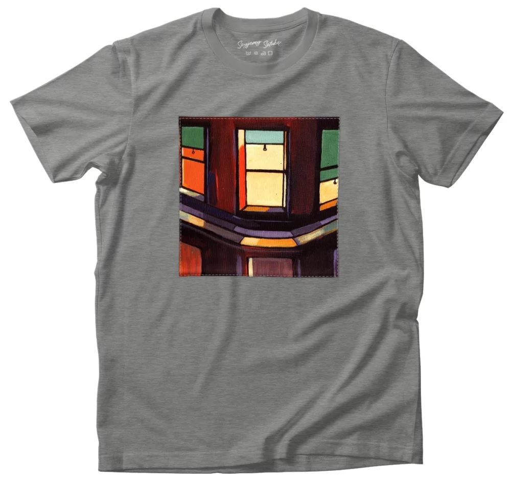 • Koszulka z naszywką Okna nocne Edward Hopper Wysoka gramatura, trwałość i unikalny detal nadający charakteru. Każda sztuka szyta na zamówienie – wyjątkowa, solidna i stylowa!