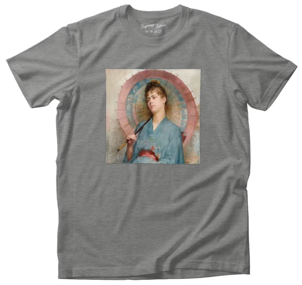 Koszulka z naszywką Kobieta z japońskim parasolem Anna Bilińska-Bohdanowiczowa 👕✨