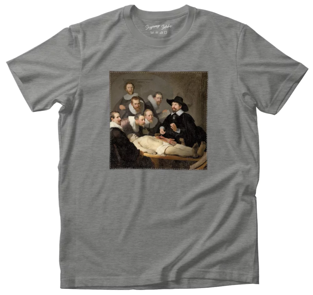 - Koszulka z naszywką Lekcja anatomii doktora Tulpa Rembrandt Wysoka gramatura, trwałość i unikalny detal nadający charakteru. Każda sztuka szyta na zamówienie – wyjątkowa, solidna i stylowa!