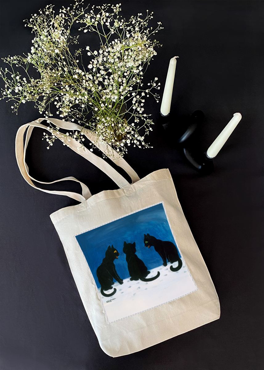 Torba z naszywką Czarne koty na śniegu Louis Wain