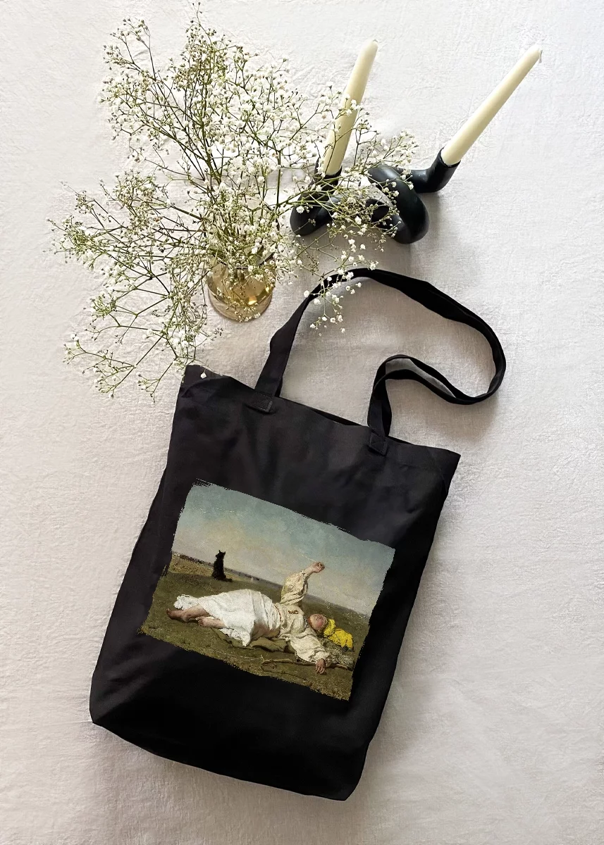 Torby dostępne są w dwóch klasycznych odcieniach: czarnym oraz naturalnym ecru. Oba doskonale podkreślają artystyczny nadruk i pasują do wielu stylizacji – od codziennej po bardziej elegancką.