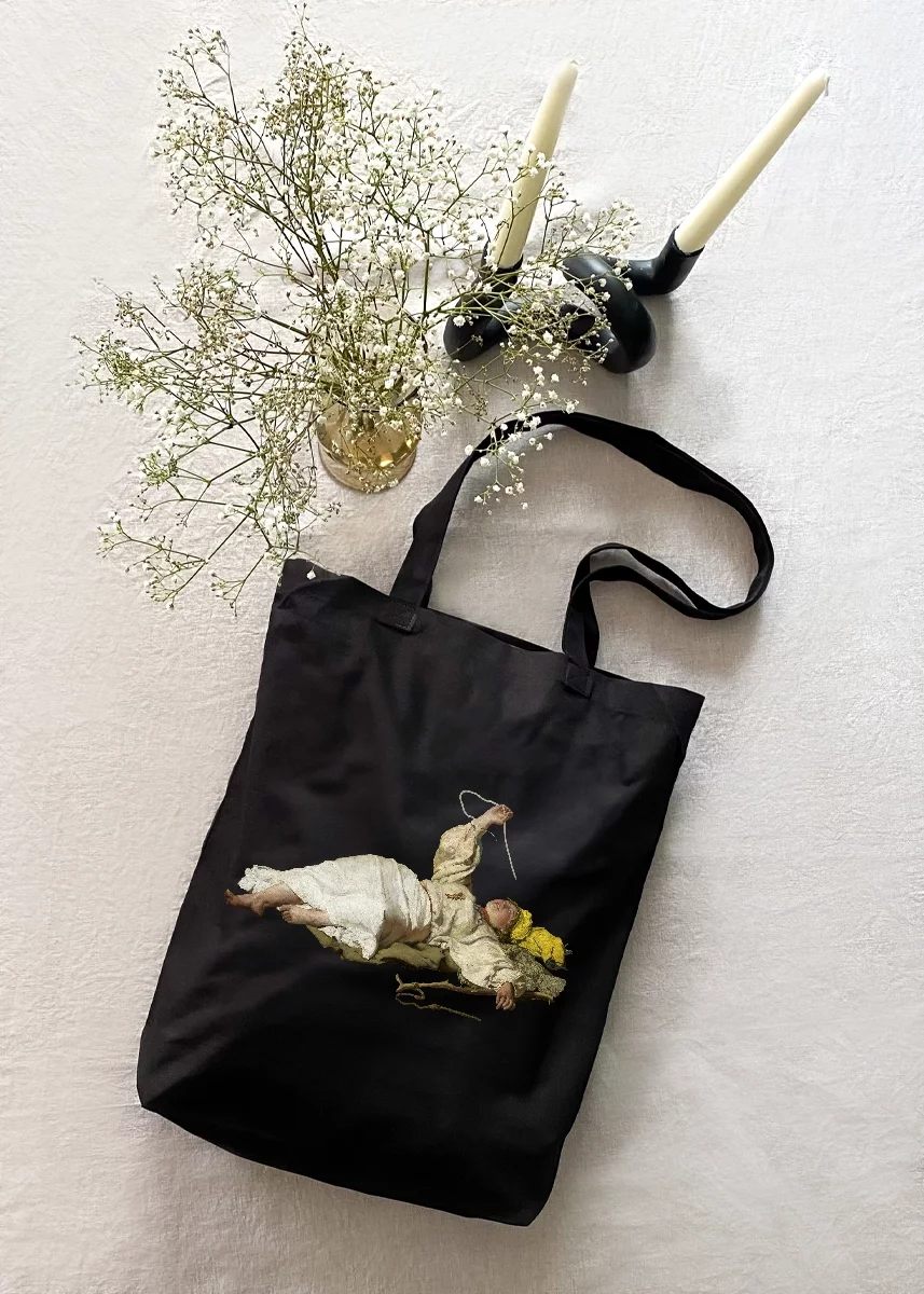 Torby dostępne są w dwóch klasycznych odcieniach: czarnym oraz naturalnym ecru. Oba doskonale podkreślają artystyczny nadruk i pasują do wielu stylizacji – od codziennej po bardziej elegancką.