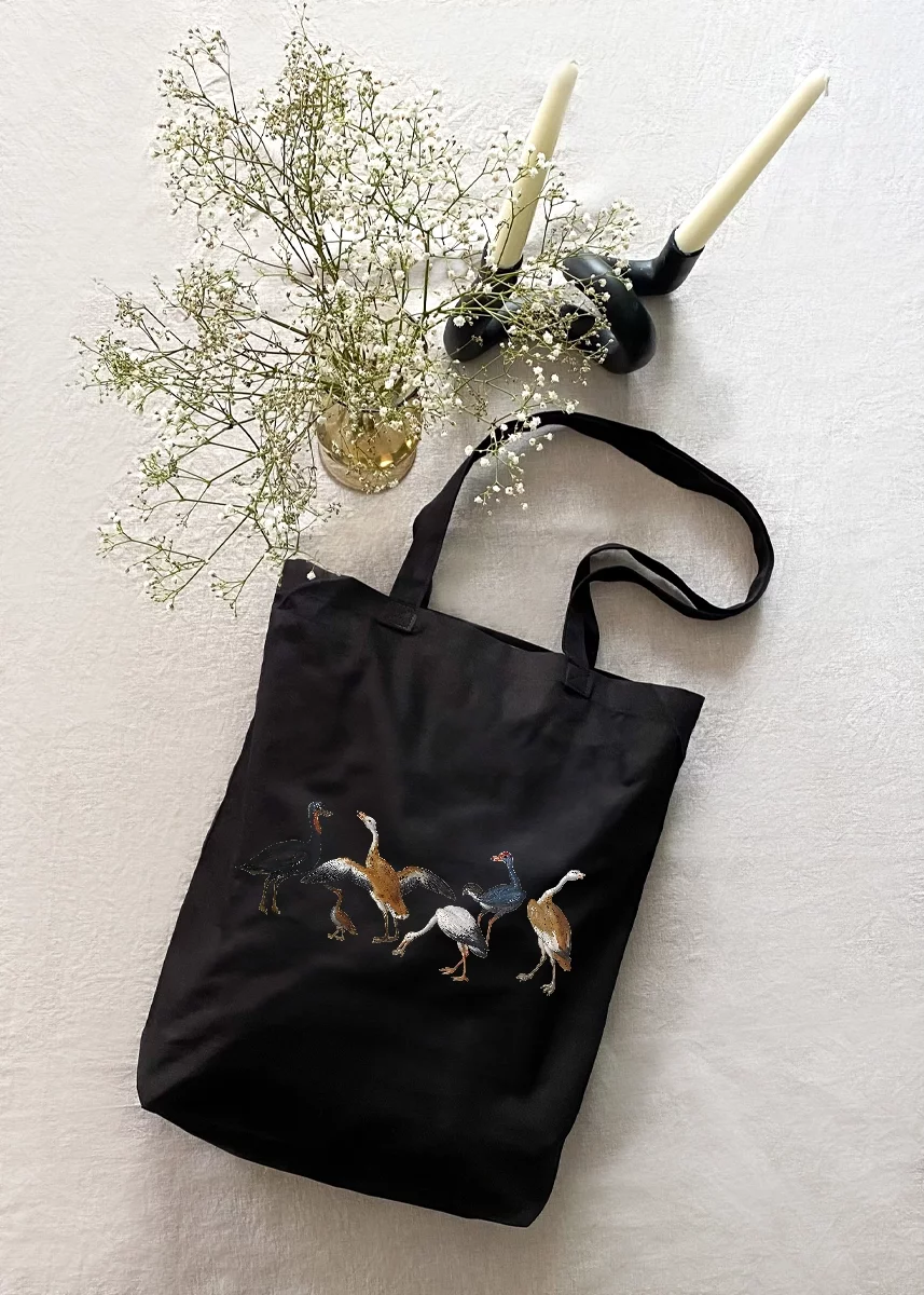 Torby dostępne są w dwóch klasycznych odcieniach: czarnym oraz naturalnym ecru. Oba doskonale podkreślają artystyczny nadruk i pasują do wielu stylizacji – od codziennej po bardziej elegancką.