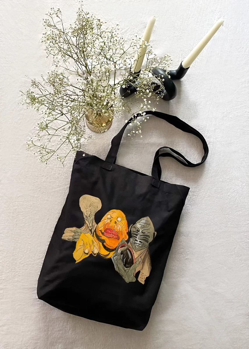 Torby dostępne są w dwóch klasycznych odcieniach: czarnym oraz naturalnym ecru. Oba doskonale podkreślają artystyczny nadruk i pasują do wielu stylizacji – od codziennej po bardziej elegancką.