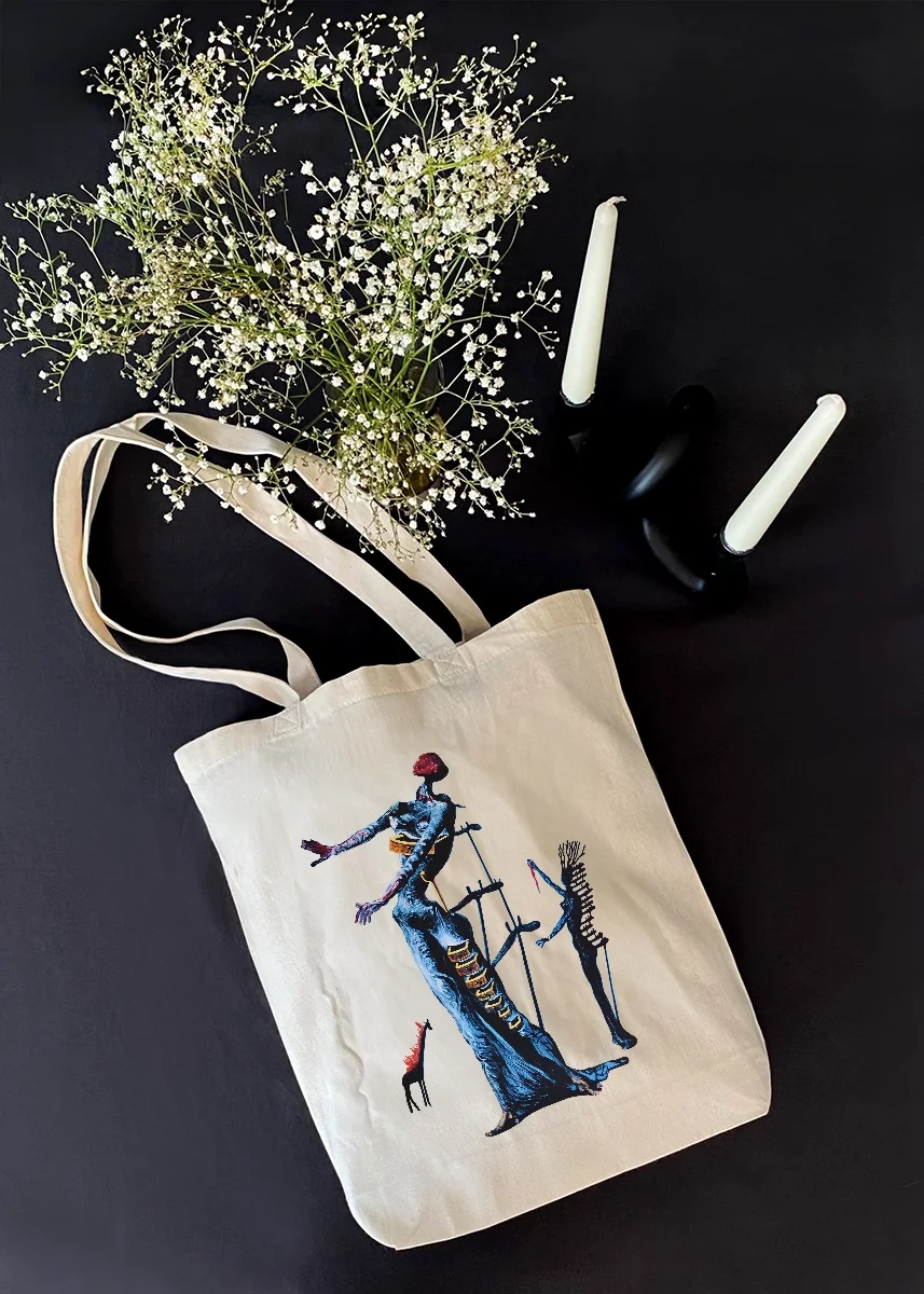 Torby dostępne są w dwóch klasycznych odcieniach: czarnym oraz naturalnym ecru. Oba doskonale podkreślają artystyczny nadruk i pasują do wielu stylizacji – od codziennej po bardziej elegancką.