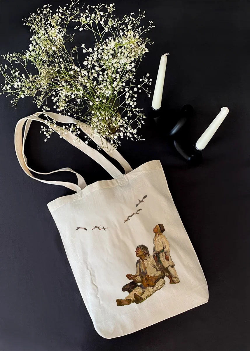 Torby dostępne są w dwóch klasycznych odcieniach: czarnym oraz naturalnym ecru. Oba doskonale podkreślają artystyczny nadruk i pasują do wielu stylizacji – od codziennej po bardziej elegancką.
