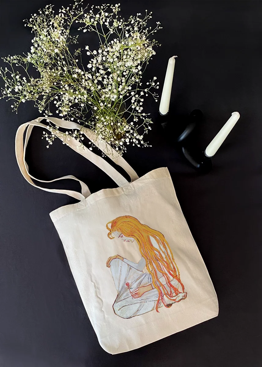 Torby dostępne są w dwóch klasycznych odcieniach: czarnym oraz naturalnym ecru. Oba doskonale podkreślają artystyczny nadruk i pasują do wielu stylizacji – od codziennej po bardziej elegancką.