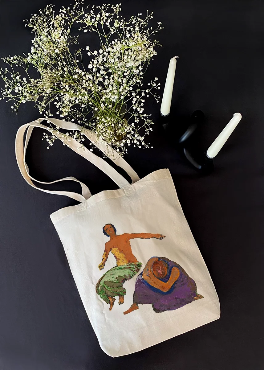 Torby dostępne są w dwóch klasycznych odcieniach: czarnym oraz naturalnym ecru. Oba doskonale podkreślają artystyczny nadruk i pasują do wielu stylizacji – od codziennej po bardziej elegancką.