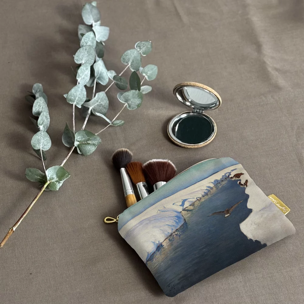 - Artystyczna kosmetyczka mini z nadrukiem obrazu Pejzaż zimowy z rzeką i ptakiem ✨ – idealna dla miłośników malarstwa i pięknych detali. Lekka, praktyczna i stylowa, sprawdzi się w podróży i na co dzień❤️